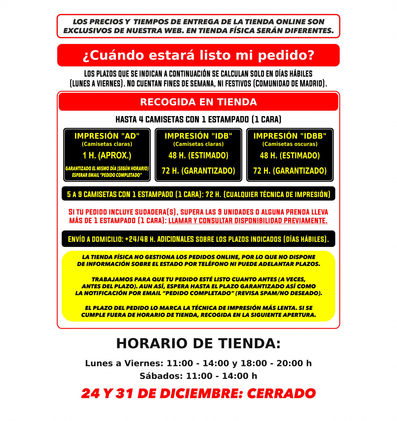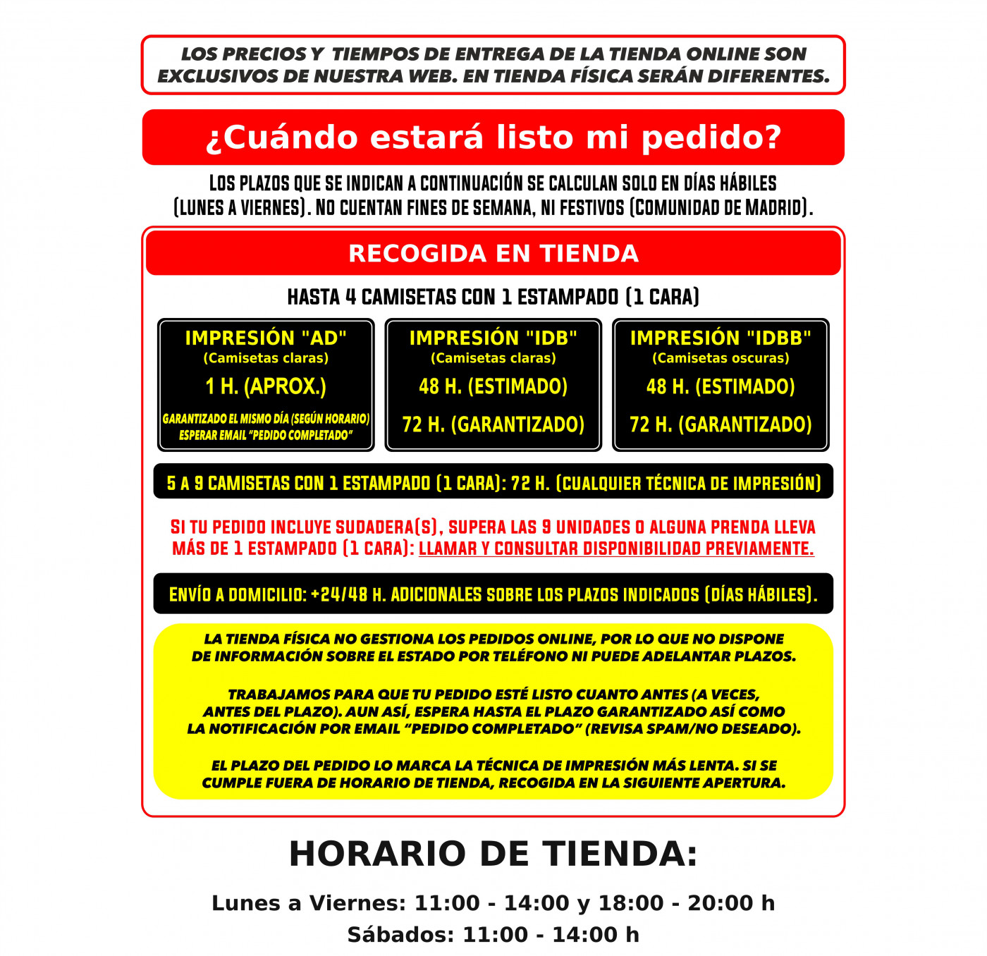 ¡Trae tu diseño a nuestra tienda de Madrid y lo imprimimos en unos minutos desde el momento en que se lo entregues a uno de nuestros empleados! ¡Así de rápido!